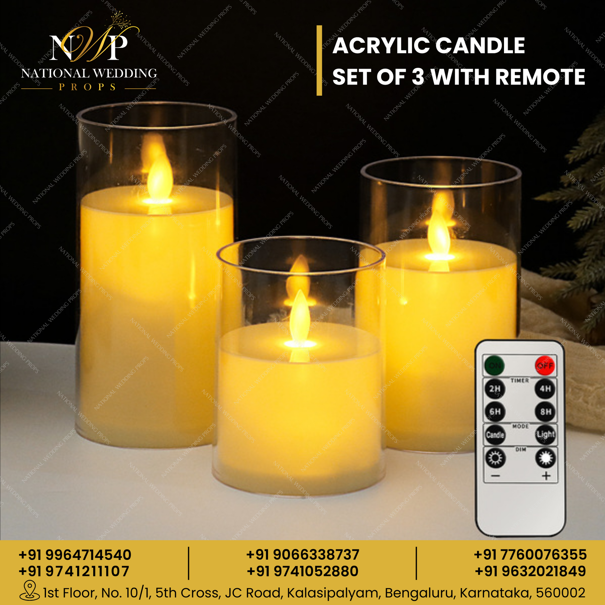 Acrylic Candle Set of 3 with Remote