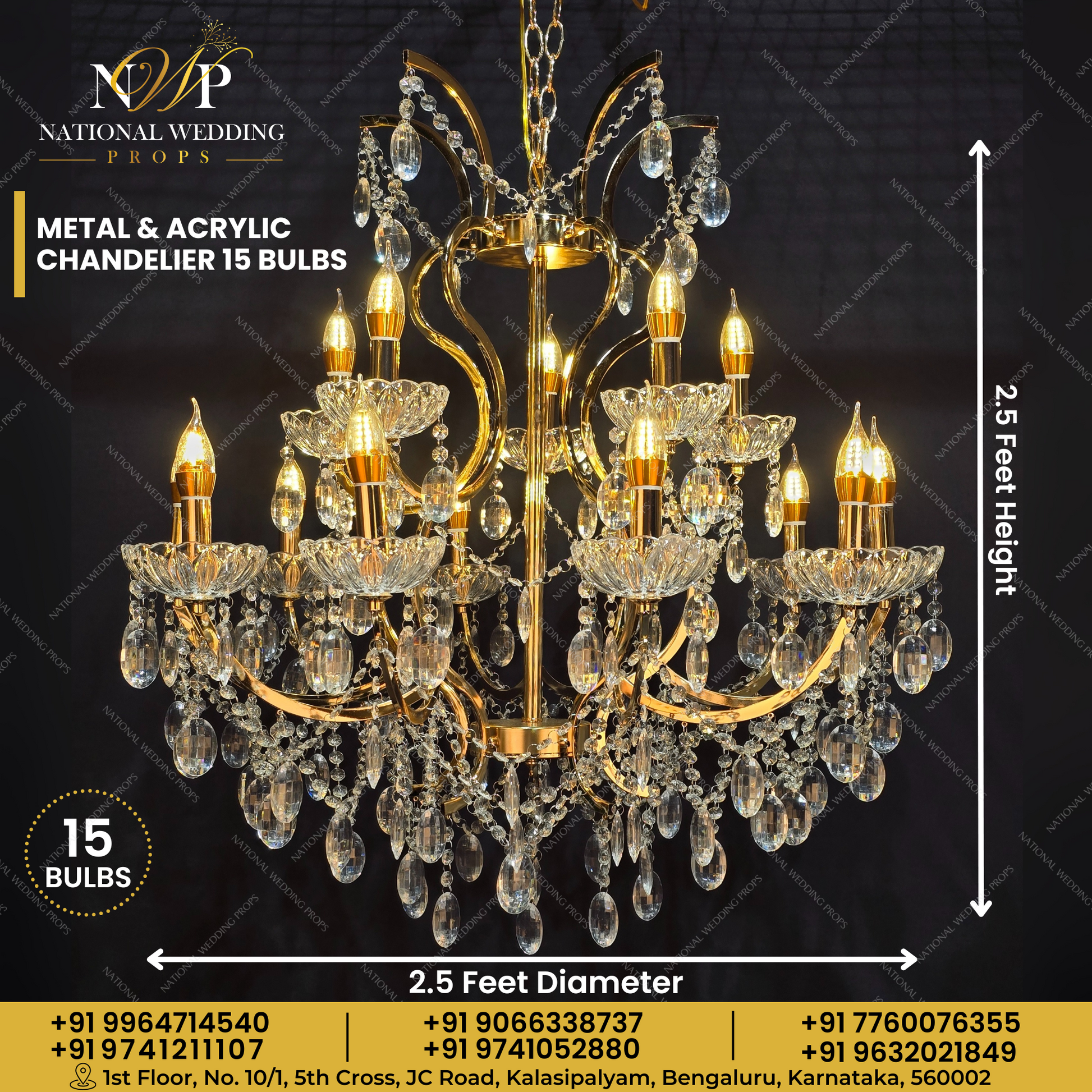 Metal & Acrylic Chandelier 15 Bulbs