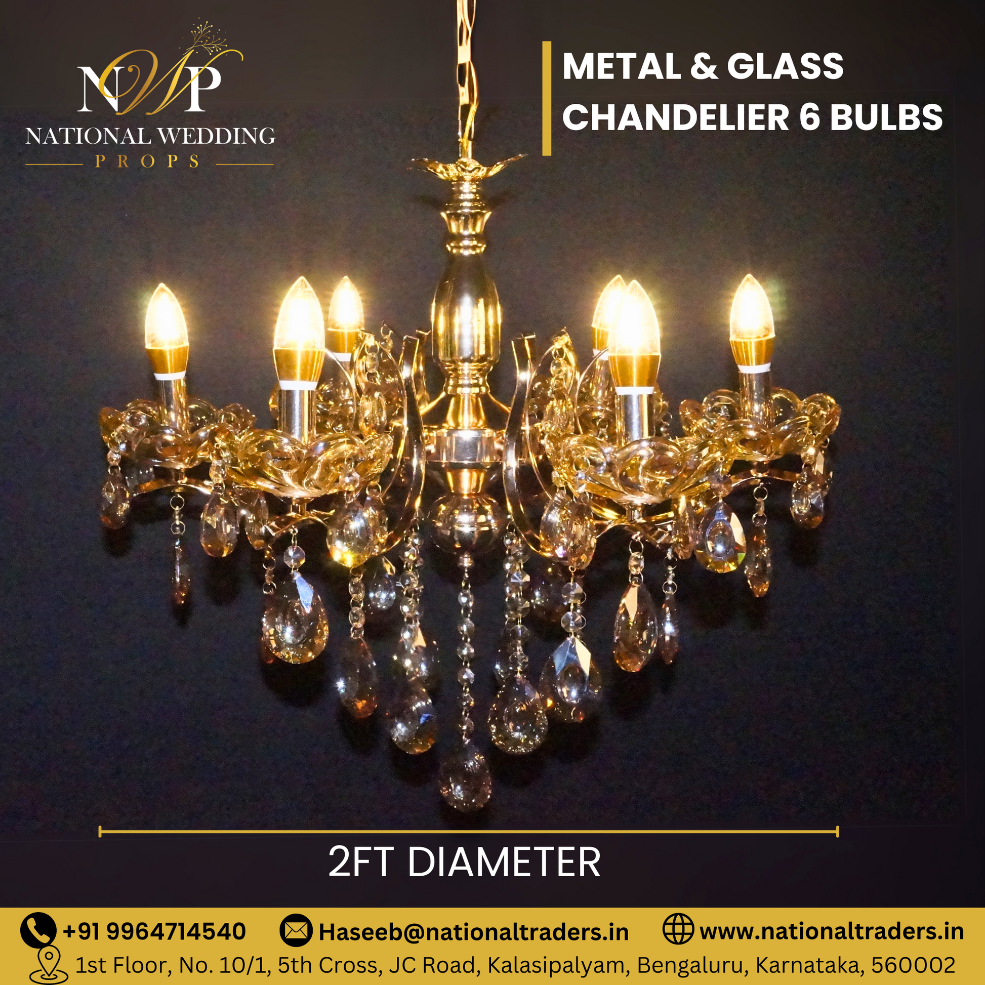 Metal & Glass Chandelier 6 Bulbs